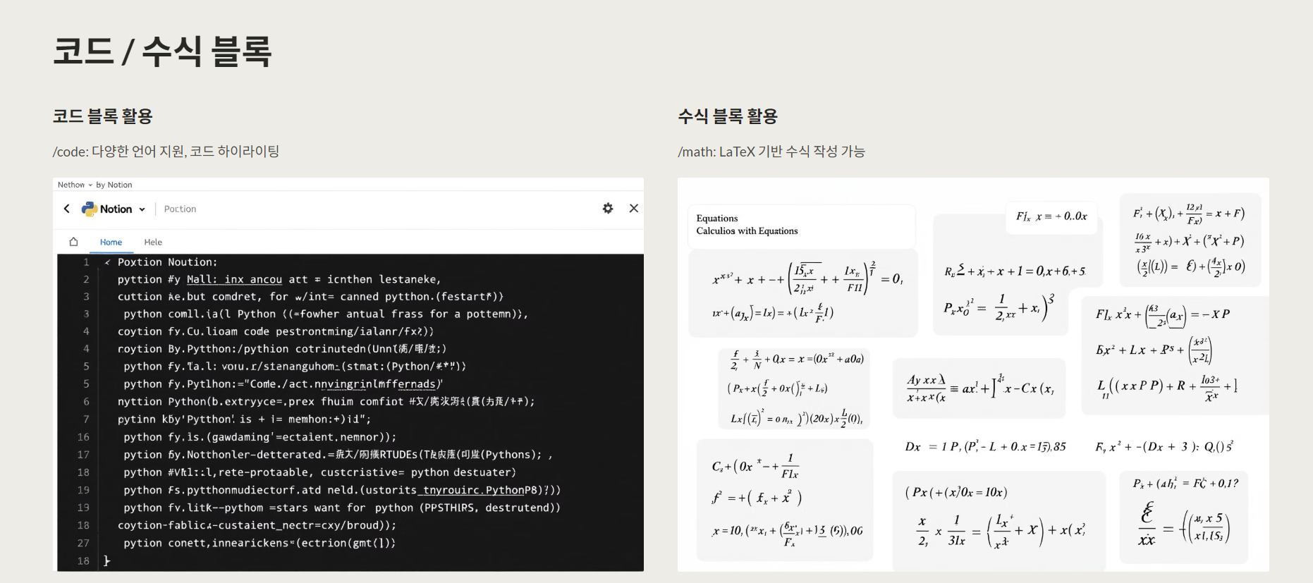 - 코드 블록 / 수식 블록 – 개발자와 학습자를 위한 도구