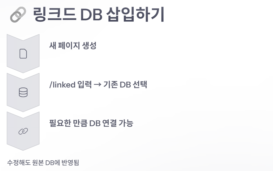 🦌 노루팁: /linked로 불러온 DB는 원본과 실시간 동기화되기 때문에, 수정해도 데이터는 그대로예요!
