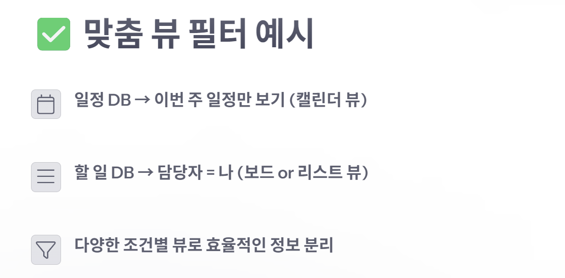 그럴 때 필요한 게 바로 대시보드(Dashboard)입니다. 대시보드는 내가 자주 확인하는 정보들을 한 곳에 모아서 보여주는 개인 맞춤형 페이지예요. 특히 링크드 데이터베이스(Linked DB)를 활용하면 여러 DB에서 필요한 정보만 골라서 뷰(View) 형태로 통합할 수 있어요.