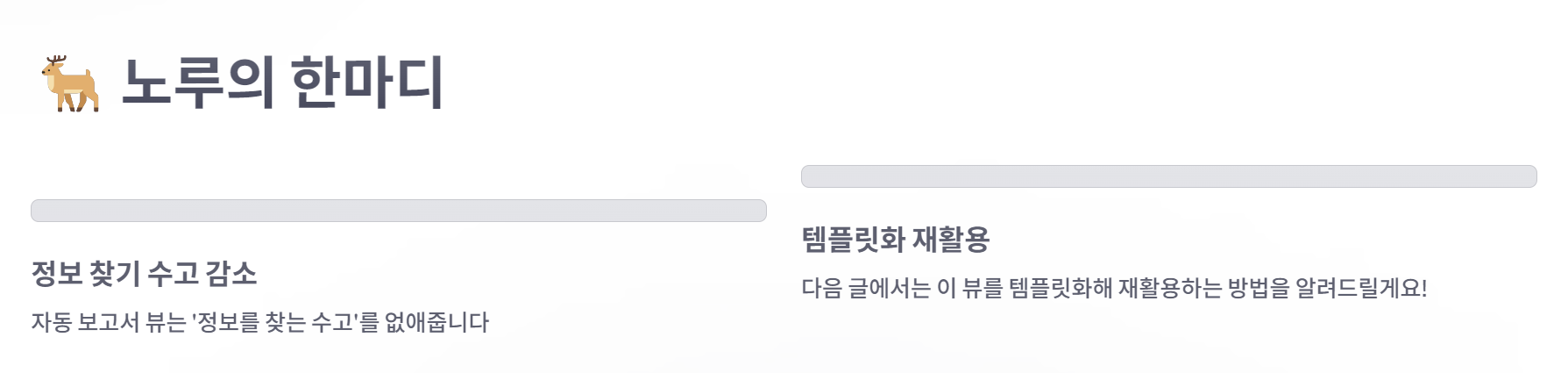 🦌 노루팁: 뷰를 템플릿으로 저장해두면 리포트 페이지마다 복사 가능!